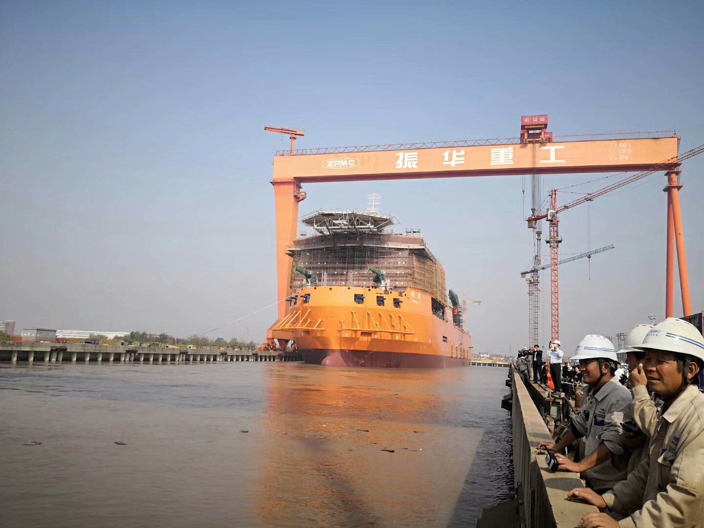 上海振華重工承建4500T起重?fù)岆U(xiǎn)打撈船順利下水