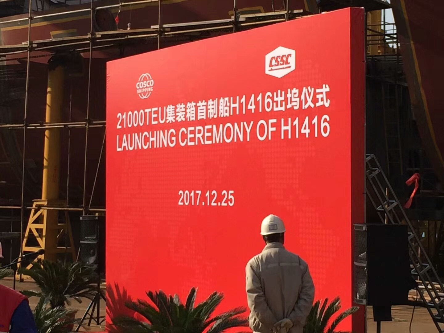 祝賀南通豪通船務(wù)(江南事業(yè)部)在上海長(zhǎng)興江南重工參與建造的目前世界最大的21000TEU集裝箱(H1416),于2017年12月25日順利下水!