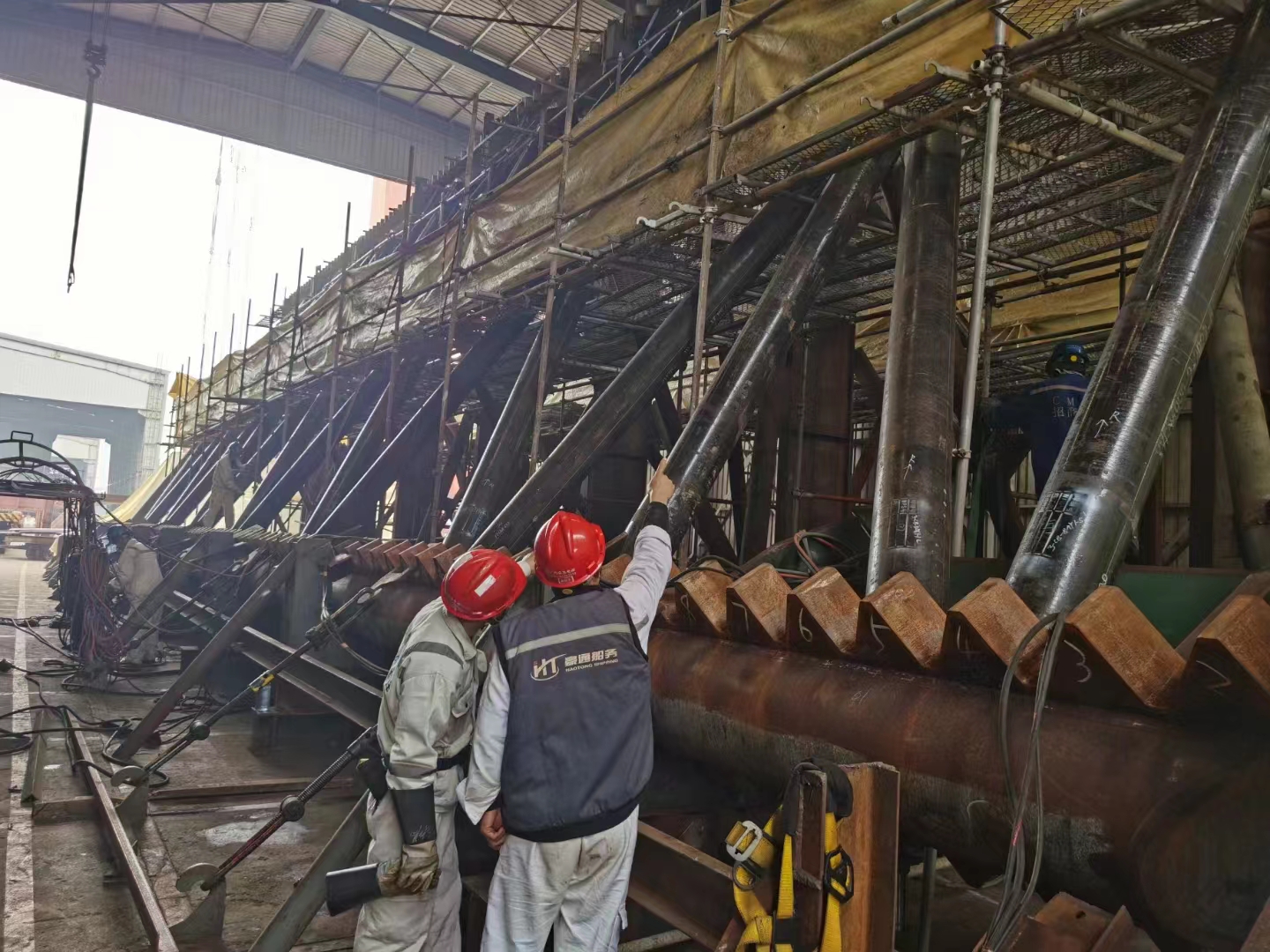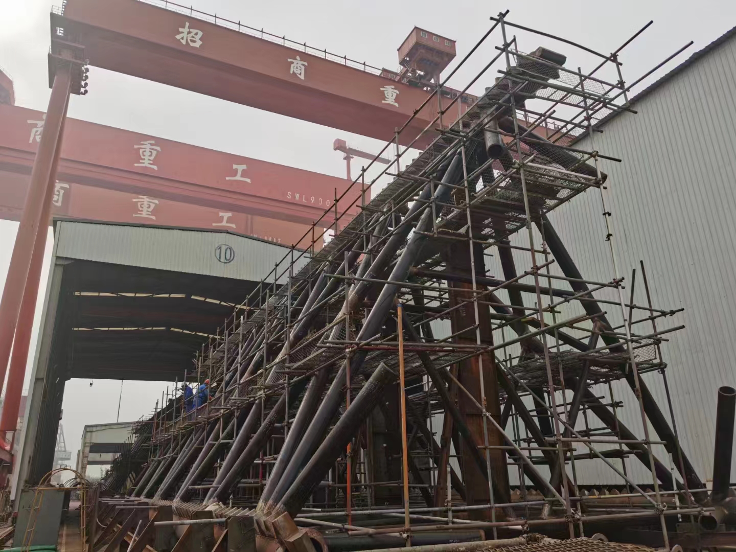 2023年4月30日,隨著招商重工273項(xiàng)目最后一節(jié)樁腿的成功摘鉤,標(biāo)志著豪通船務(wù)承接的招商重工“1200噸風(fēng)電安裝船”樁腿工程完美收關(guān)。自22年8月1日開始,豪通船務(wù)調(diào)集最優(yōu)秀的班組從齒條加工,單樁腿制作,樁腿合攏及最后的插樁對接,每一個(gè)環(huán)節(jié)都嚴(yán)絲合縫,無縫對接,所有作業(yè)人員爭分奪秒,夜以繼日,力爭在最短時(shí)間內(nèi)保質(zhì)保量完成項(xiàng)目并交付。