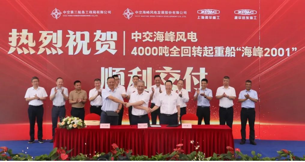 7月25日,由中交海峰風(fēng)電投資、振華重工建造的“施工+運(yùn)輸”一體化4000噸全回轉(zhuǎn)起重船“海峰2001”項目交船儀式在振華啟東海工隆重舉行,我國海上風(fēng)電領(lǐng)域再添利器。江蘇啟東副市長黃晨,中交集團(tuán)供應(yīng)鏈管理部總經(jīng)理助理黃毅,中交三航局黨委副書記、總經(jīng)理龔海,中交海峰風(fēng)電黨委書記、董事長季振祥,振華重工黨委副書記、總裁歐輝生出席儀式。