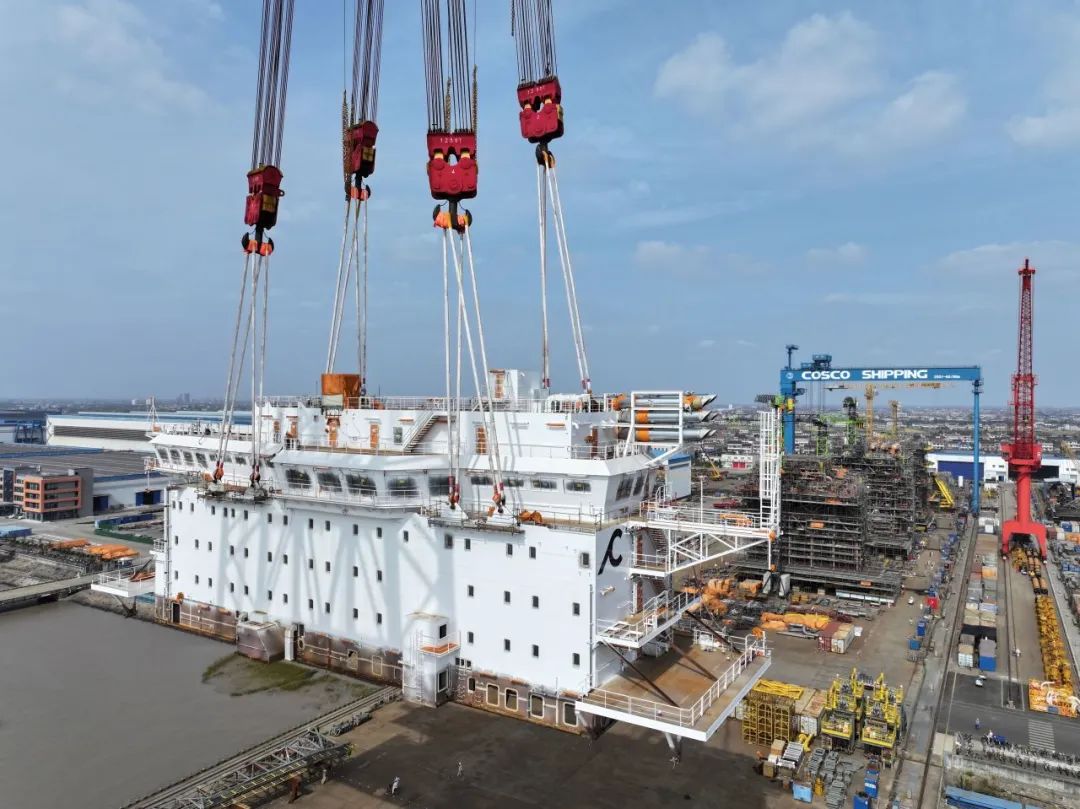 日前,啟東中遠(yuǎn)海運(yùn)海工N1063項(xiàng)目完成生活區(qū)完整性吊裝重大節(jié)點(diǎn)。從2月中旬至10月底,歷時八個半月,從開始搭載到生活區(qū)完整性交付和整體吊裝。是啟東中遠(yuǎn)海運(yùn)海工目前為止海工建造項(xiàng)目周期性最短、完整性最高的生活區(qū)項(xiàng)目。